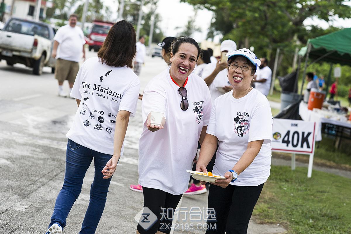 比赛赛道沿线共设18个大小补给站,全部由塞班当地的各大酒店、餐厅提供,橙子、香蕉、面包、白煮蛋、盐渍梅子、运动饮料、纯净水等吃喝补给一应俱全,每个补给站的工作人员都是当地原住民,从深夜到天明,用他们十二分的热情为经过的跑者加油助威。看图片就知道有多带劲儿!