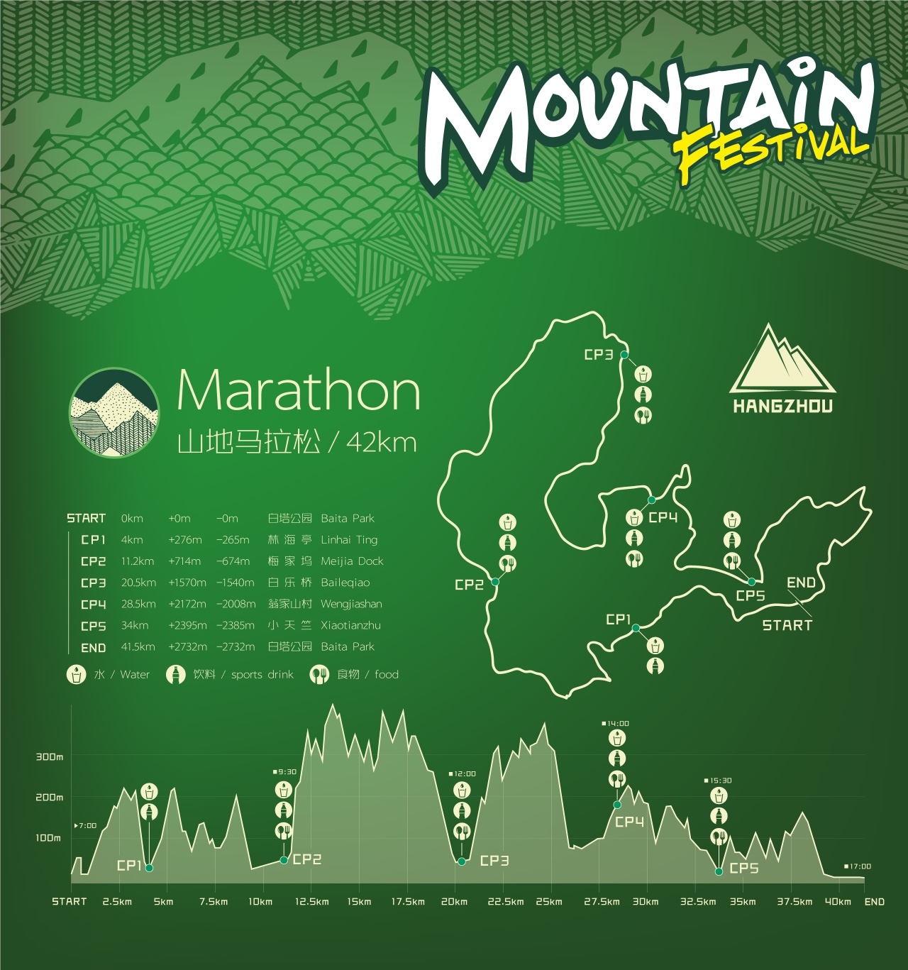 山地马拉松:41.5km,累计爬升2732m,关门时间10小时,报名费单人组人民币499元/人、团队人民币2000元/组,其中团队组四人为一组,每组至少有一名女性。