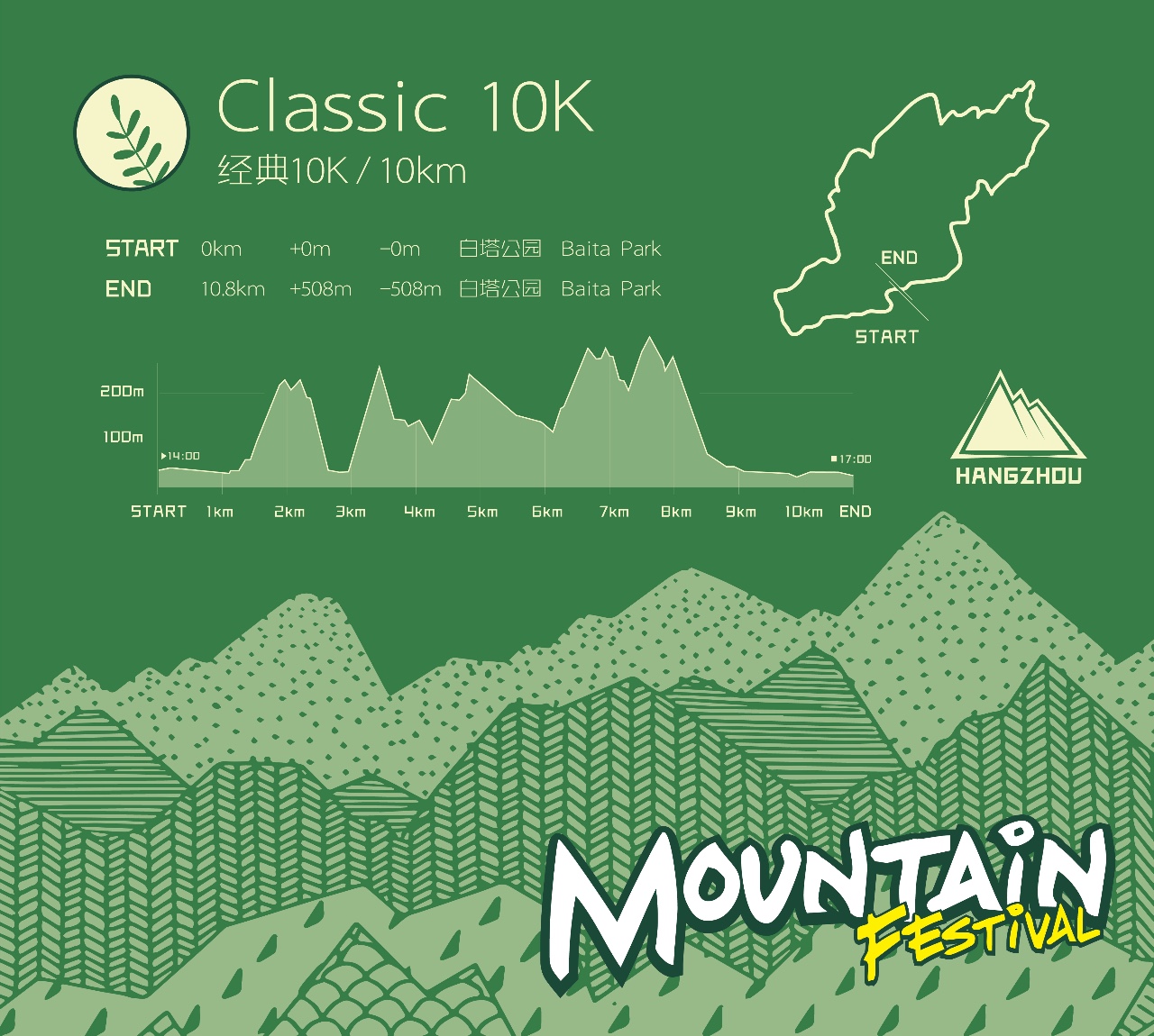 经典10K:10.8km,累计爬升503m,关门时间3小时,报名费人民币180元/人。