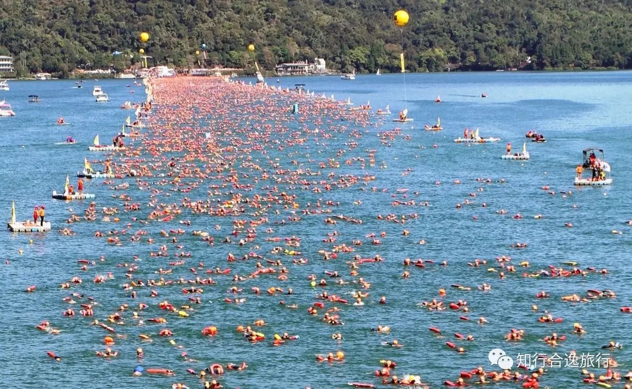 额,确实日月潭是全年管制,不能游泳,但是你知道“黄金九小时”吗?就是日月潭国际万人泳渡,日月潭一年一度盛会,今年已是第35届,时间就定在9月24日,招募人数为25000人,横渡距离为3公里!