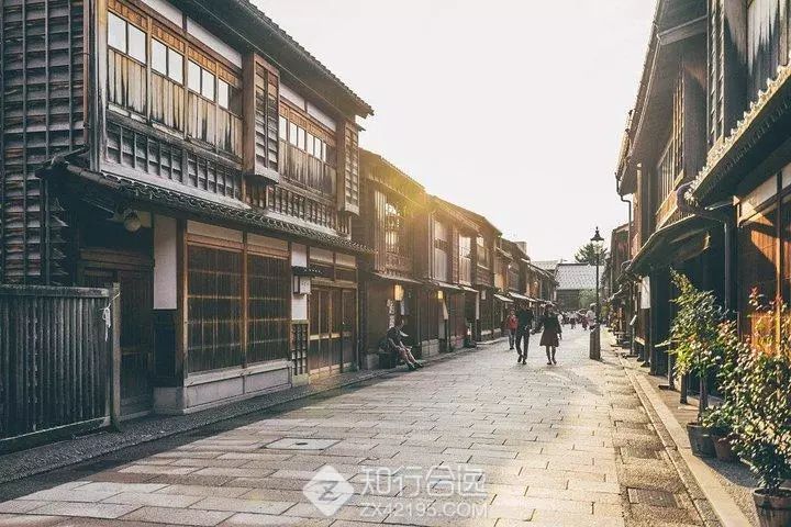 从金泽车站坐公交大约15分钟就能到东茶屋街。金泽有江户时代延续至今的三大茶屋街,分别称作西茶屋街、东茶屋街、主计町。石板路边排列着江户时代的茶屋建筑,一层是紫红格子窗,二层是遮雨棚,美丽的街景散发着格调高雅的古日本风情。