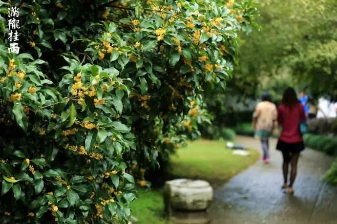 花斑往往随风洒落,密如雨珠,人行桂树丛中,沐“雨”披香,别有一番意趣,故被称为“满陇桂雨”。