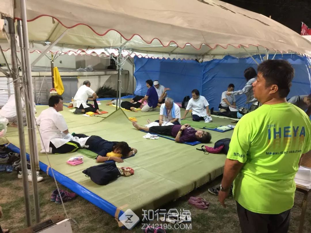 当你到达终点,会有专门的工作人员为你放松身体,当然还有必不可少的饭食!