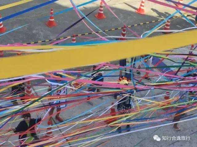 最后一天,参赛选手照常乘船出发,在登船之前,服务人员会给每位参赛选手两圈彩带。