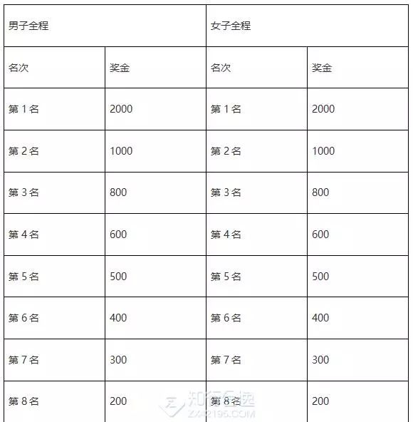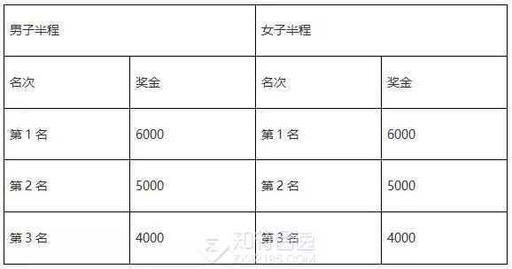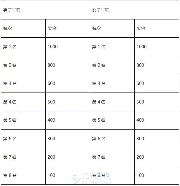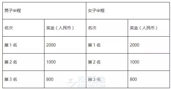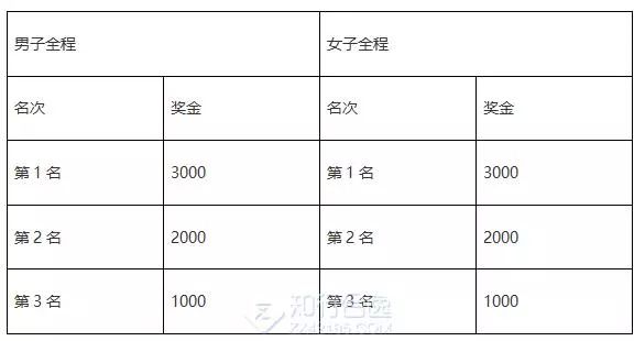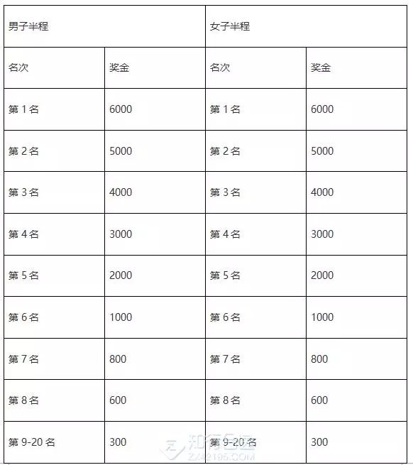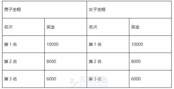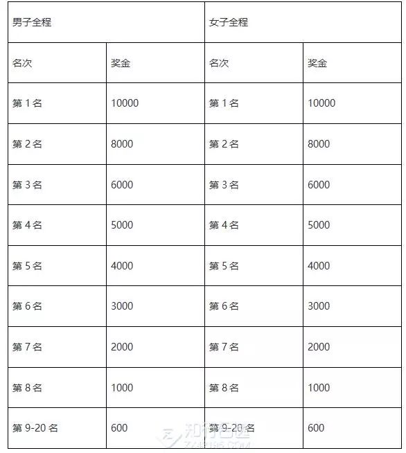 中国藉运动员特别奖:中国藉运动员按净计时成绩录取男子和女子前三名运动员给予每人特别奖励(人民币/元)