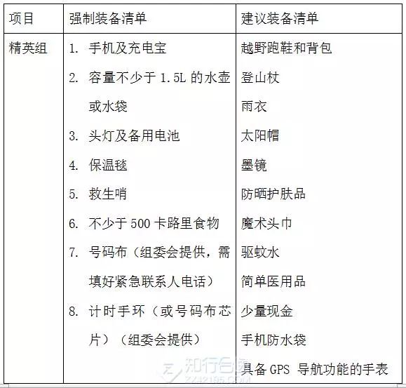 赛事装备:请务必携带全部强制装备!