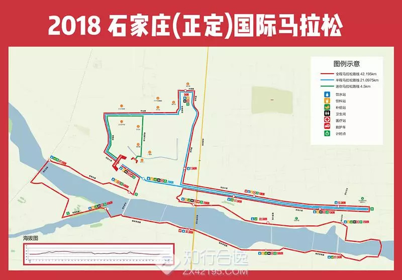 正定南门河北大道(起点)—成德街—中山路—旺泉南路—兴荣路—城东街—河北大道—奥体中心(折返)——河北大道—御河上院西侧道路—滹沱河北岸景观道—花海—滹沱河南岸景观道—翠屏东路—开启利北侧无名路—107国道滹沱河大桥—滹沱河北岸景观道—子龙大桥东侧辅道——正定南门河北大道(终点)