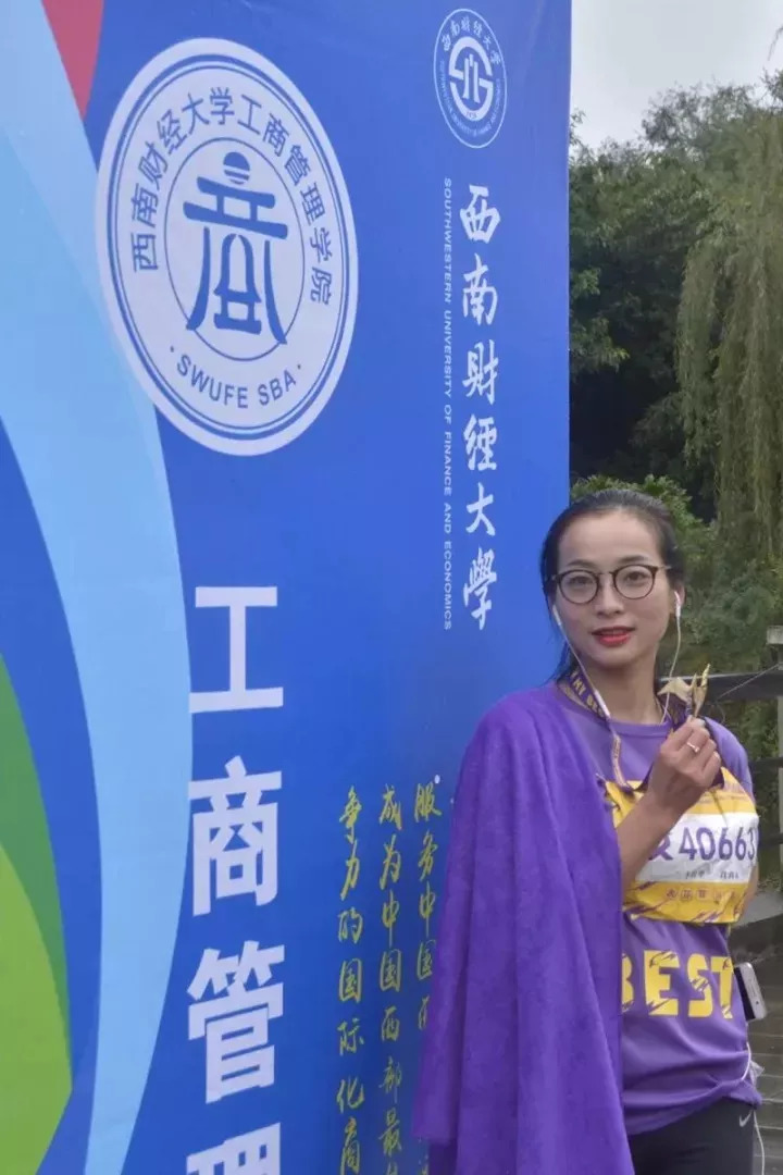 我觉得长跑是一种信念,能够坚持下来,就是对自我的突破。这是我第一次在大学校园里跑马拉松,西财的校园环境和赛事的精心布置让人印象深刻。