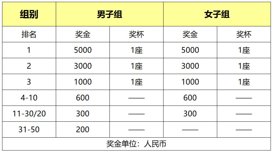 比赛奖励取35KM组男子前50、女子前20名,为其颁发奖金。