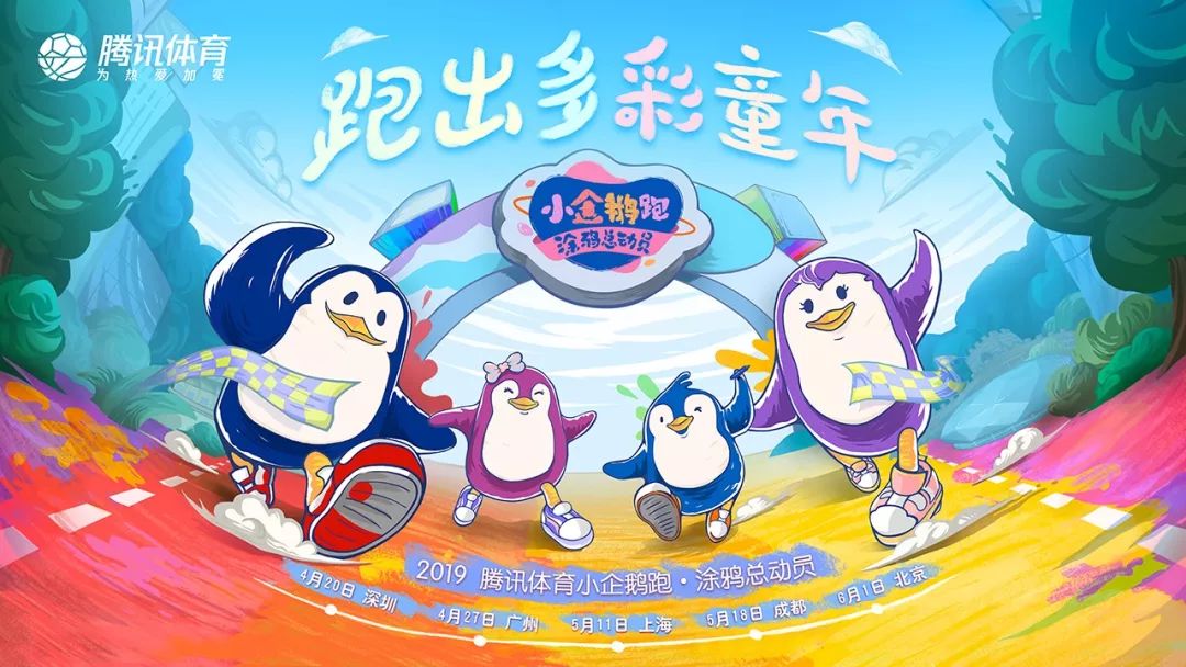 腾讯体育全新自制亲子路跑赛事,2019小企鹅跑·涂鸦总动员欢乐来袭!赛事将以“跑出多彩童年”为主题,以色彩、涂鸦、企鹅为主要元素,通过父母和孩子共同完成跑步、互动、游戏等赛事体验,传达陪伴、快乐、健康、创造、公益等赛事理念,着力打造国内亲子市场影响力最大的赛事IP。
