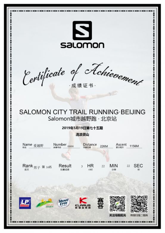 冠军奖品:价值千元以上的salomon越野跑鞋一双;