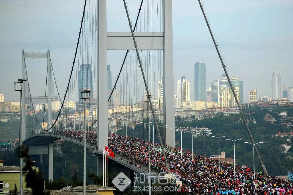 伊斯坦布尔马拉松的前身为著名的欧亚大陆马拉松,首届赛事于1979年举办,2013年正式更名为伊斯坦布尔国际马拉松,目前已经是国际田联的金标赛事。无论是全马、15公里、10公里还是8公里的乐趣跑,所有比赛项目都将会在欧亚大陆分界地标的博斯普鲁斯海峡的亚洲侧起跑。发枪后,将会出现万人通过博斯普鲁斯欧亚大桥奔向欧洲的壮观场景,极具仪式感。