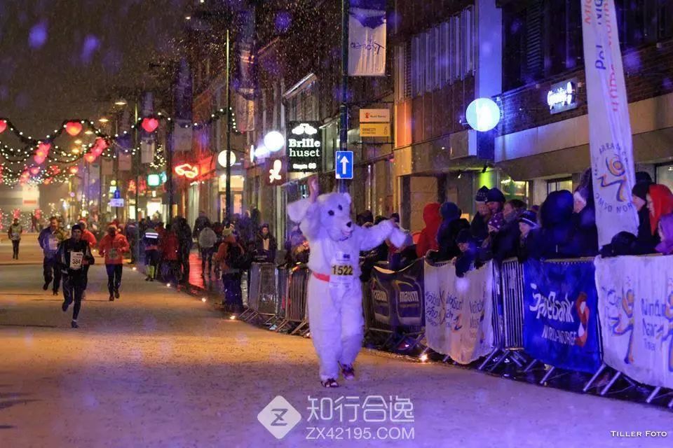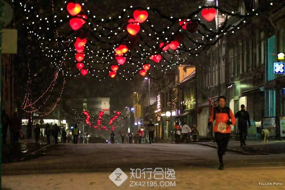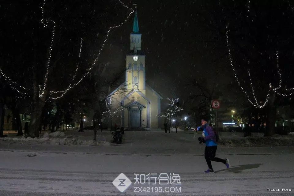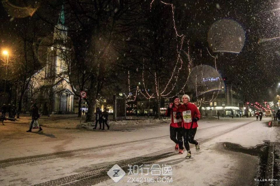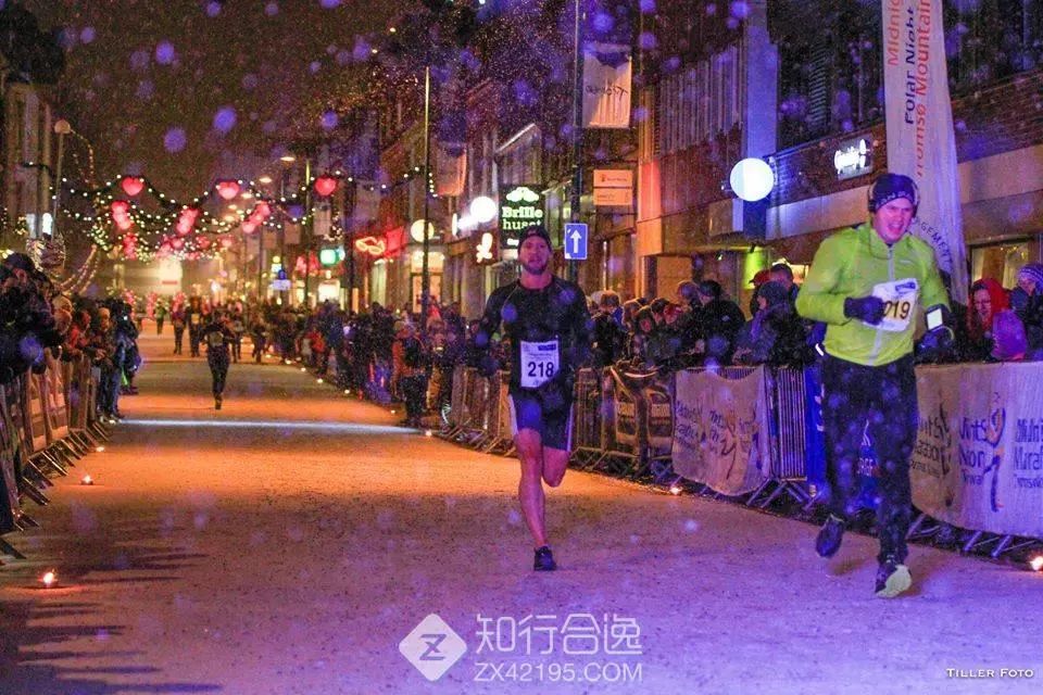 极夜又称永夜,是指全天24小时,太阳都在地平线以下的现象。极夜半马的比赛地点位于北极之门——挪威特罗姆瑟,它位于北纬69度39分,东经17度57分处。在北极圈内215英里处,人口约6.5万,是北极圈内最大的城市,这里也是非常容易看到极光的地方哦!