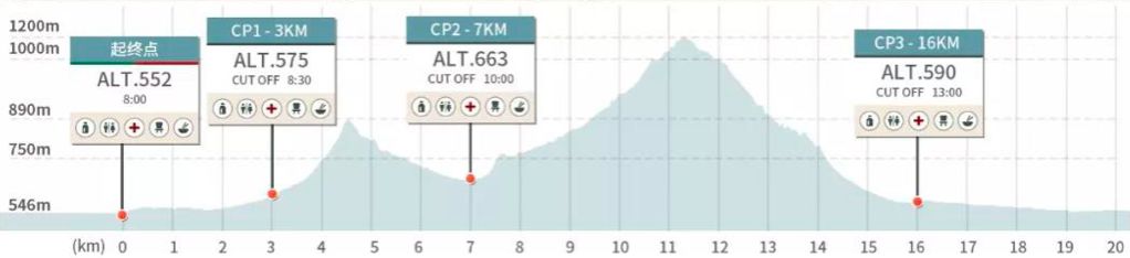 20公里的越野距离爬升1050m,是初练身手的最佳选择,适宜的难度与强度,既能体验越野赛的挑战性,也能收获安全、快乐、刺激和完赛后的成就感!