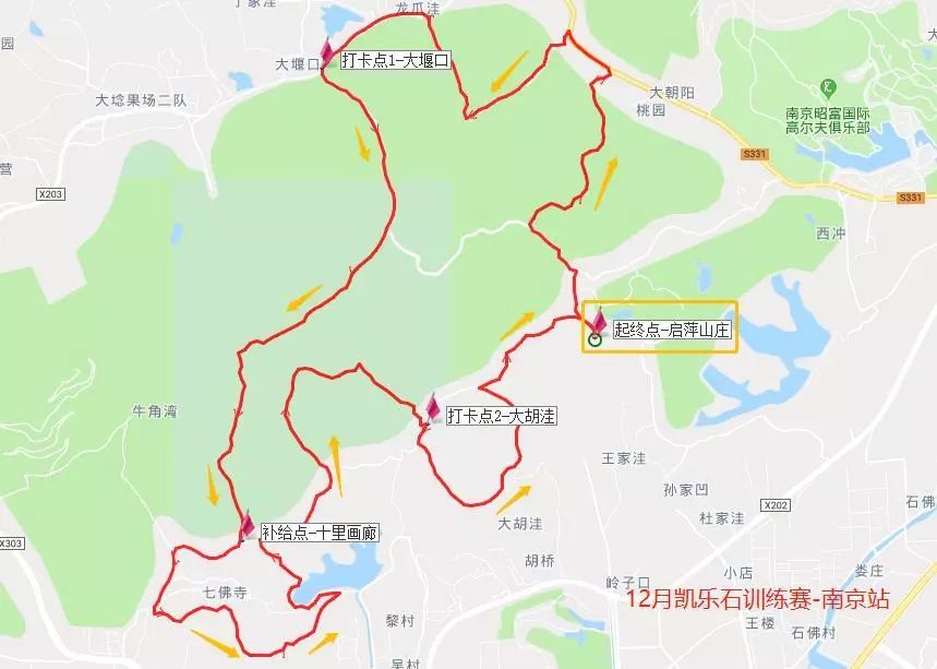 a.208元/人(费用含手环押金50元、赛后农家特色餐、比赛当天个人意外保险、补给品等)b.308元/人(费用含凯乐石定制参赛T恤、手环押金50元、赛后农家特色餐、比赛当天个人意外保险、补给品等)(报名费一经支付成功,不可退款;赛后凭手环现场退押金)2.参赛者应身体健康,经常性参加跑步锻炼或训练;建议完成过半程以上马拉松赛事者可报名参加3.具有导航功能的运动手表或运动APP并提前导入本次比赛GPX轨迹。(1)百度网盘轨迹下载链接https://pan.baidu.com/s/1zJDovT8DRyMLPluOMx5ljQ,或者微信扫描小程序二维码获取(2)软件“户外助手”搜索用户“阿祥快跑”,在“轨迹/专辑”中找到“12月凯乐石训练赛-南京站”点击下载轨迹,请认准官方认证轨迹。(3)赛事当天选手通过报名时填写的手机登录“两步路户外助手”软件,可直接查看赛事信息, 自动加载轨迹。2、幸运奖:活动结束后,现场抽取幸运奖,奖励KAILAS产品(已获奖选手除外);3、年度积分奖:每次参与者均可获得2个积分,比赛中第一名8个积分,第二名6个积分,第三名4个积分,年度积分前三名者(不分男女)将获得凯乐石产品奖励。4、参赛全勤奖:一年内全部参与南京站训练赛者将获得全勤奖,获得凯乐石跑山产品。5、全勤志愿者奖:一年内全部参与南京站训练赛的志愿者将获得志愿者全勤奖,获得凯乐石最新跑山产品。1、起点位于浦口区佛手湖公园附近的佛手湖路上的启萍山庄(靠近四方美术馆)。2、自驾导航,地图软件搜索“佛手湖路”(靠近四方美术馆),导航即可,门口可免费停车。3、公共交通:地铁3号线“柳州东路”站2出口,转乘坐694路(柳州东路总站西站→→珍珠泉总站)终点站“珍珠泉总站”下车,步行约15分钟到达(2.3公里)。4、乘坐D58(中华门城堡→→珍珠泉总站)早班车6:30发车。终点站“珍珠泉总站”下车,步行约15分钟到达(2.3公里)。