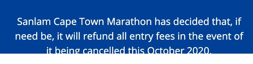 南非开普敦马拉松,通常举办于9月中旬,这一次,受到疫情的影响,改日期到10月18日!并在官网上宣布,如果因为疫情原因比赛取消,全额退还报名费!