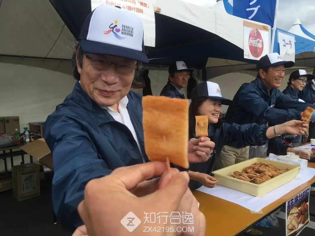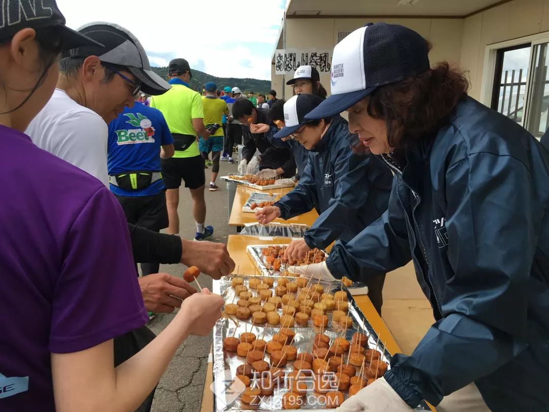 14公里的时候,面对地道的北海道牛乳、豆沙面包、丸子,我也是点到为止