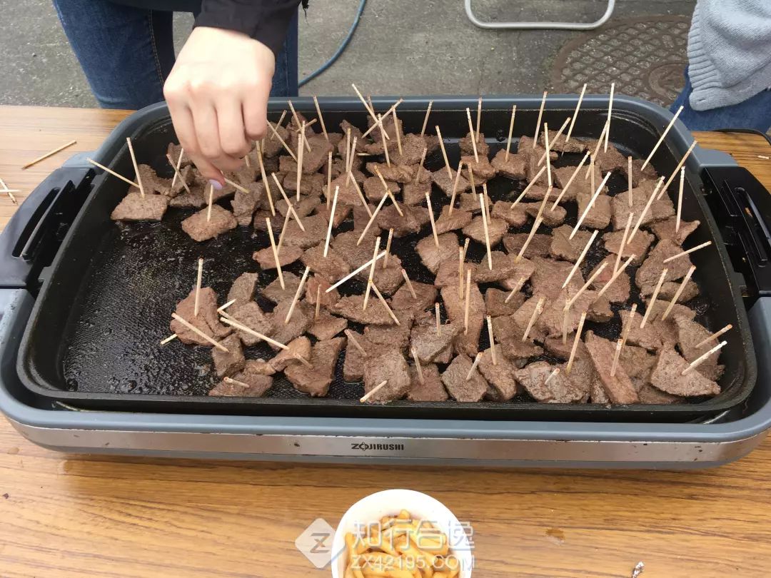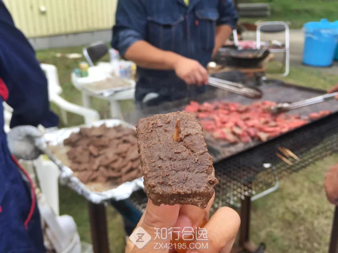 这么好的牛肉,当然要热乎乎的吃啊,组委会为了保证牛肉的品质,特别在路边支了烧烤摊,就这么明晃晃的在路边现烤了起来,烤好的牛肉再由工作人员端到一米开外的补给点,一个个插上牙签,方便跑者食用!轻轻咬一口,肉质鲜嫩,牛肉的汁水悄没声息的在舌尖打转,在同味蕾的电光火石碰撞间升华,好吃到流泪,根本舍不得走啊.....