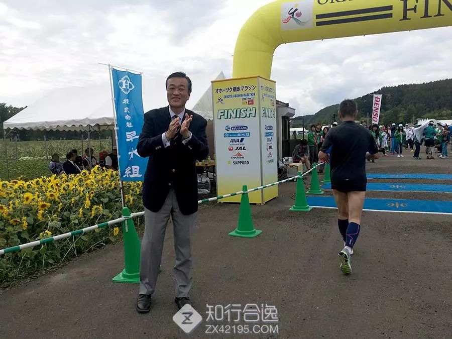 终点的拱门处,身高足有1米九的网走市市长一直站在那里,笑眯眯的等着大家!跟市长握手、冲线、志愿者给挂奖牌、披完赛毛巾,一气呵成,极具仪式感!