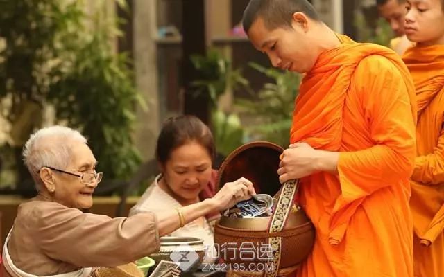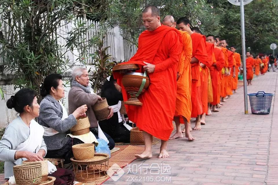 由于比赛时间设定在5点30分出发,出发不久你就能看到东南亚地区传统的佛教活动——布施。每天清晨六点左右,寺庙中的僧人穿着清一色的橙色僧袍,赤足列队走到街上,依次接受信徒或游客赠予的食物。