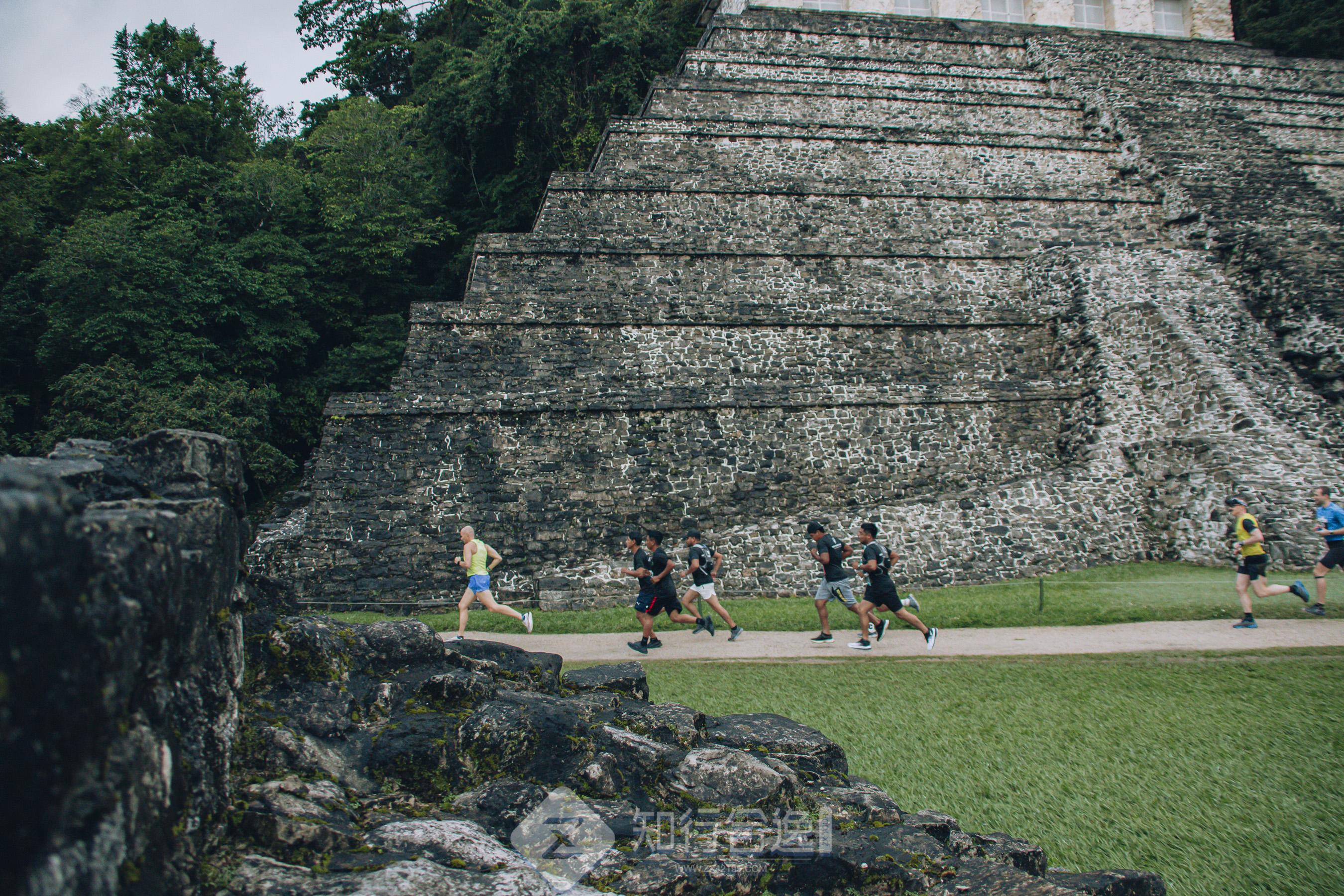 比赛正是从帕伦克考古区出发,带您穿过茂盛丛林中这座伟大的古玛雅城市的遗迹。3 公里后,路线过渡到下坡的柏油路,直到左转进入碎石路。继续前行几公里,路线接近山麓,并开始逐渐上升。半马选手将在这里右转,在碎石路上绕一个相对平坦的环路,绕过风景如画的牧场,经过卡德纳斯村,到达终点线。