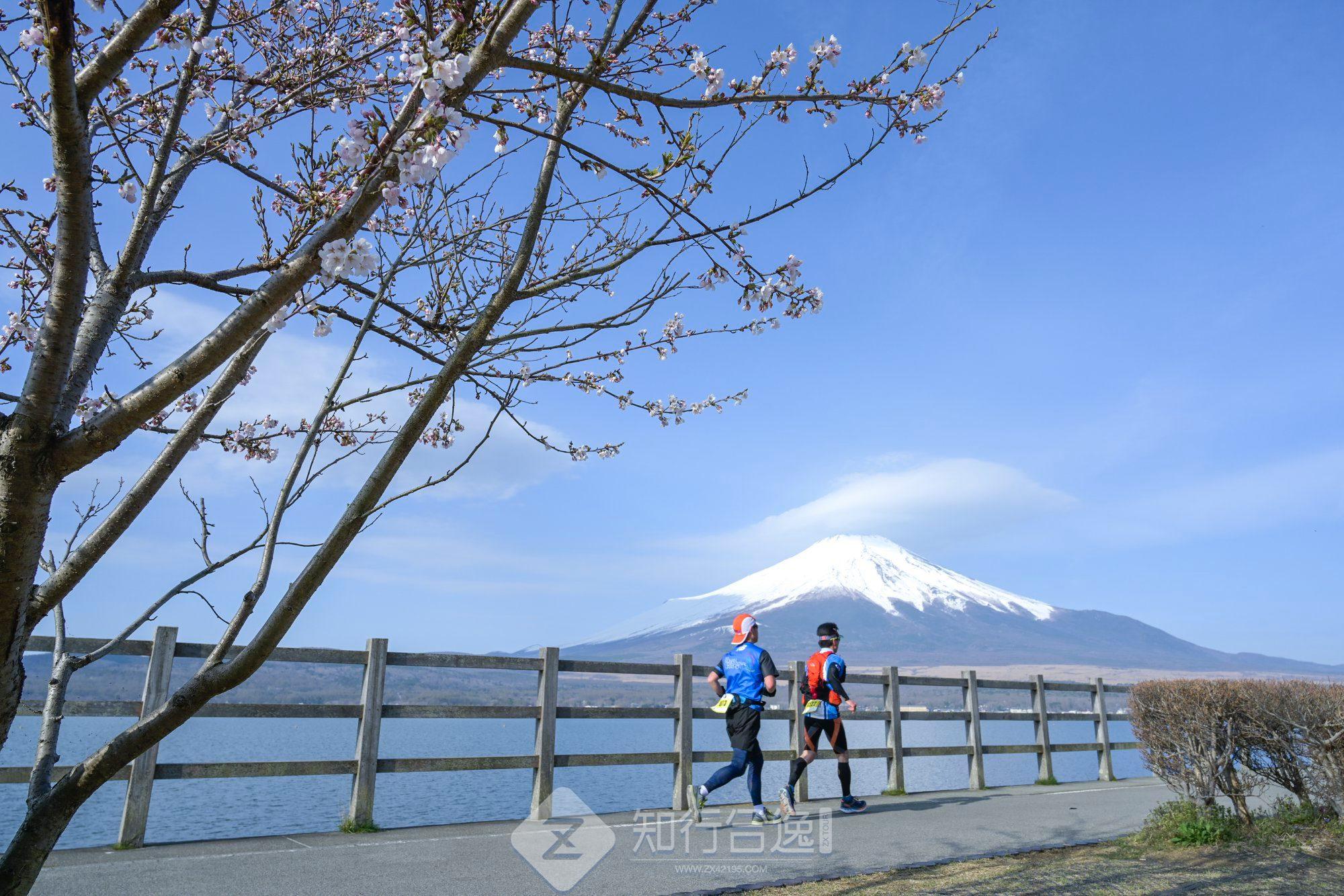 他们绕着富士山下的五大名湖,在盛开的樱花下踩着花瓣奔跑,待到朝阳升起,和煦的阳光透过头顶的樱花间隙,洒在身上,赛道上弥漫着花香,抬头远望便是白雪皑皑的富士山。而他们参加的这场比赛,就是日本仅有四场的世界遗产和地质公园系列超级马拉松之——富士五湖超级马拉松!日本 TNF 赞助!