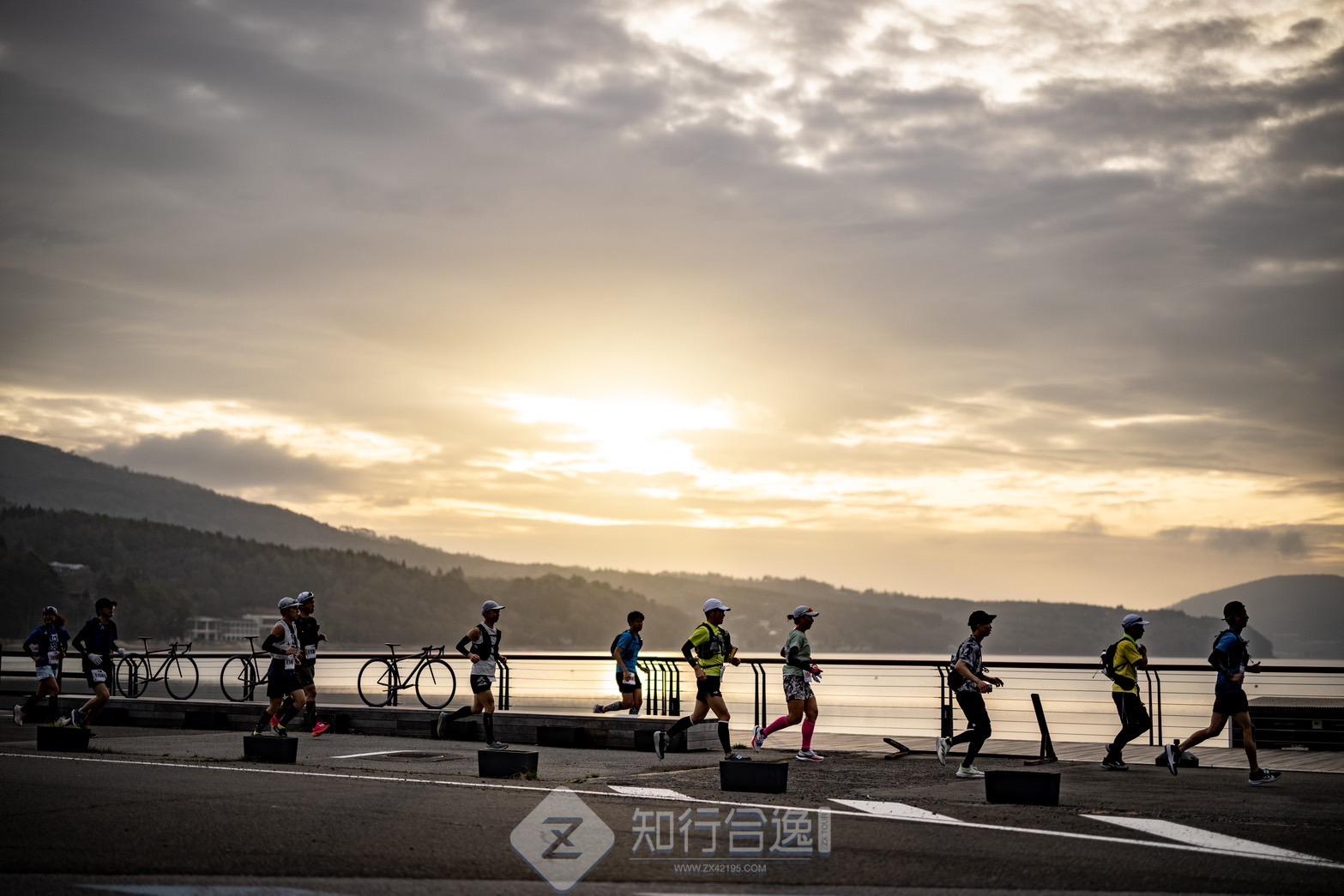 当然了,由于不是每个人都有实力连续跑完五湖,因此这场比赛根据距离和湖的数量设置了四个组别:三湖(62km,不含山中湖和本栖湖)、四湖(80km,不含山中湖)、 四湖( 100 公里,不含本栖湖)、五湖(120km,五湖全部包含)。