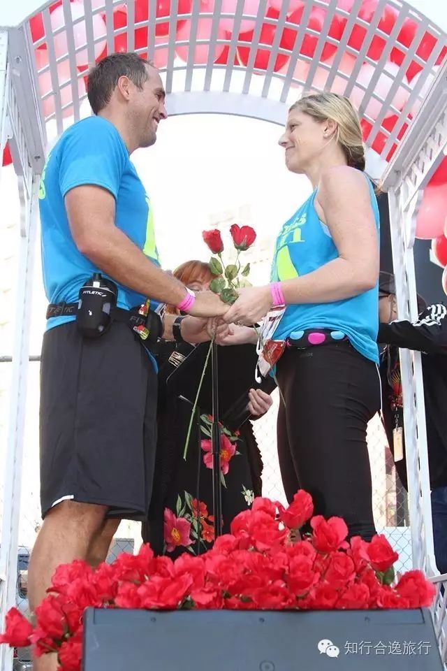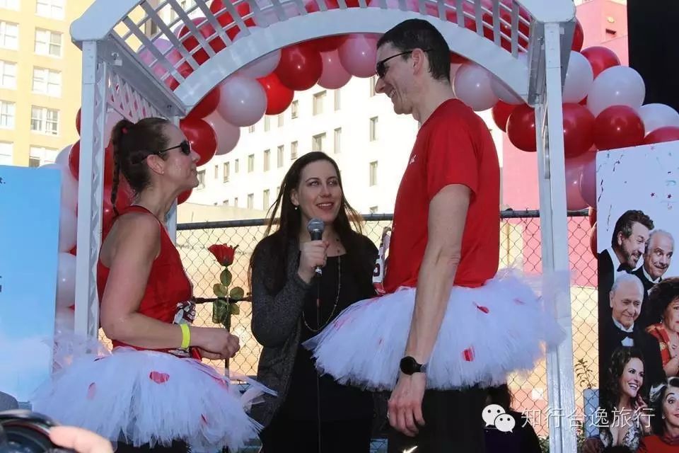 2016年的洛杉矶马拉松在情人节举行,于是组委会想了个狠招:在10英里(约16公里)的地方,正好是好莱坞星光大道与Vine街的十字路口,搞了一个马拉松婚礼,当你与爱人或情侣到达10英里,可以在这里举行一场与众不同的婚礼,或者为爱情宣誓来表达对伴侣的爱。