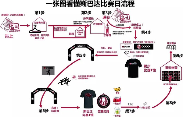Spartan Race斯巴达勇士赛一共有三个级别,分别是:Spartan Race Sprint斯巴达勇士竞速赛(6公里多,超过21个障碍)、Spartan Race Super斯巴达勇士超级赛(12公里多,超过24个障碍)和Spartan Race Beast斯巴达勇士野兽赛(21公里以上,超过30个障碍)。 今年九月青岛站进行的是竞速赛。你可以按照自己的节奏来完成比赛。每当未能成功通过障碍时需要接受惩罚,你要做30个波比跳(Burpee),然后才能继续比赛。