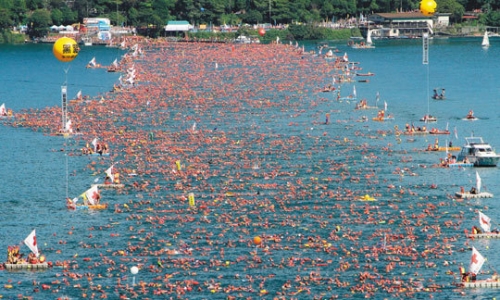 (4) 完成报到手续后请领队将队员整队,带队至下水编号处编号再前往大会会场参加泳渡。