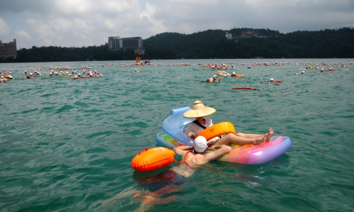 (5) 未戴大会所提供之识别泳帽者(未报名者)不得下水泳渡,为维护安全未携带鱼雷救生浮条者亦禁止下水。