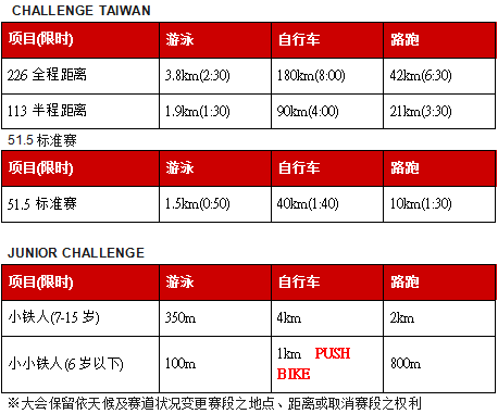 4.小小铁人(六岁以下):游泳100m、PUSH BIKE 1km、路跑 800m