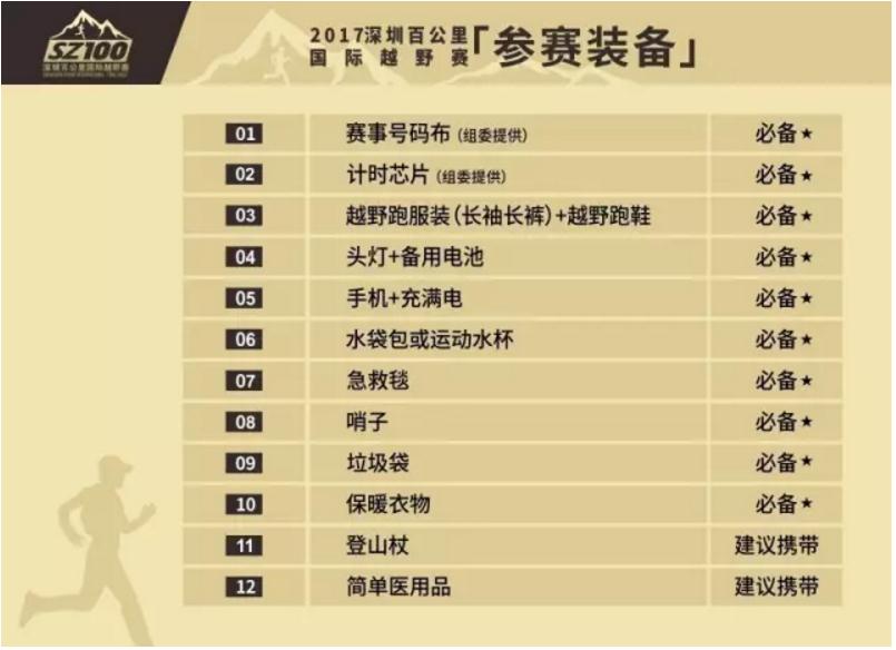 2、以上装备在运动员检录时接受检查,赛事号码布和计时芯片以及强制装备任缺一项,组委会有权取消参赛资格。比赛中,赛道裁判将随机抽查运动员装备,缺少强制装备者将被取消参赛资格
