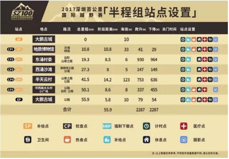 半程组将设置5个补给点(SP点)和5个打卡点(CP点)。