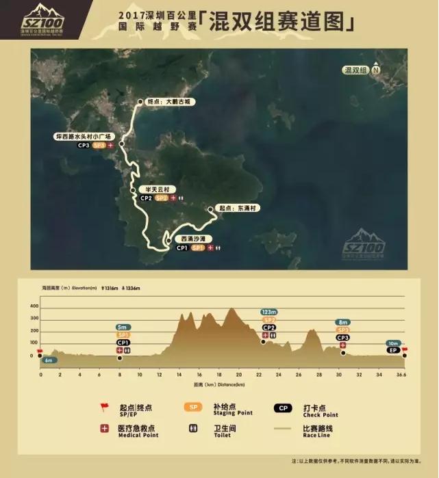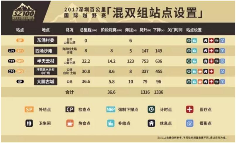 混双组将设置3个补给点(SP点)和3个打卡点(CP点)。