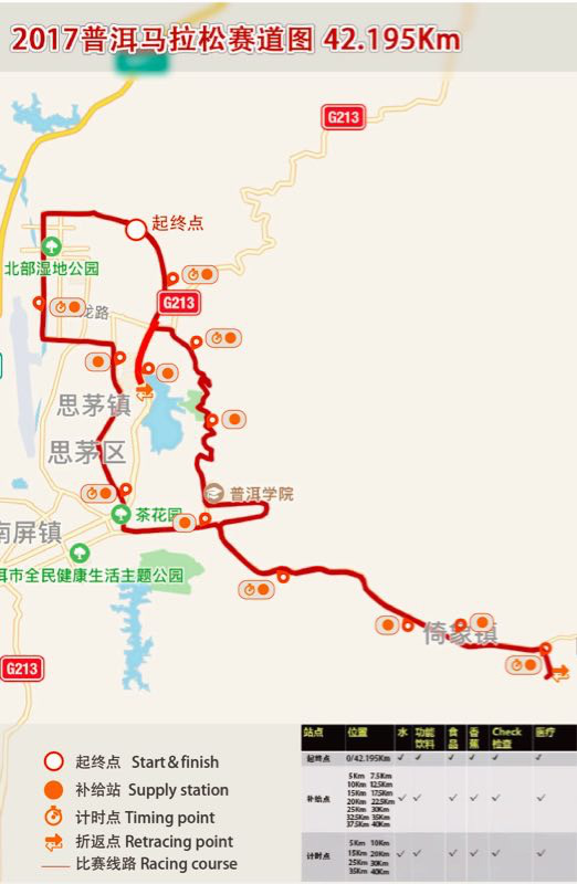 3.路线:茶马古城旅游小镇广场-普洱大道-湿地公园-滨河路-白云路-茶城大道-茶苑路-普洱学院-214省道-旅游环线-菩提路-一号公路-普洱大道-洗马河公园折返-普洱大道-茶马古城旅游小镇广场