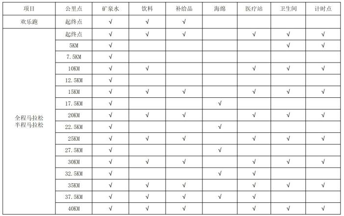 (七)饮水、饮料、补给、医疗及计时点: