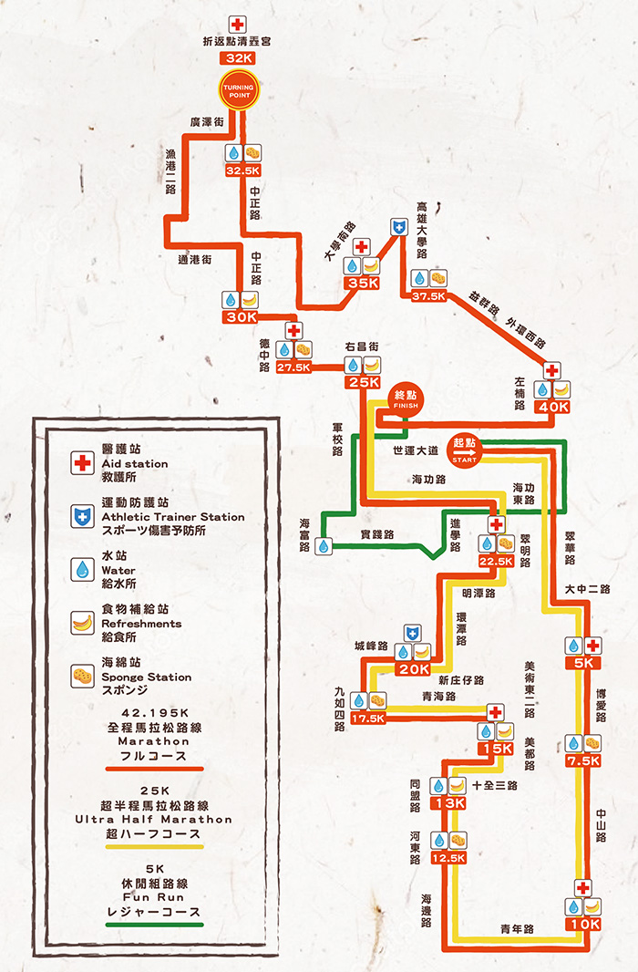 台湾第二大城市举行的马拉松赛事,也是南台湾部最大型的马拉松盛世,宽阔干净的街道,热情高涨的观众,深获往届跑友肯定,被誉为全台湾最友善城市马拉松。