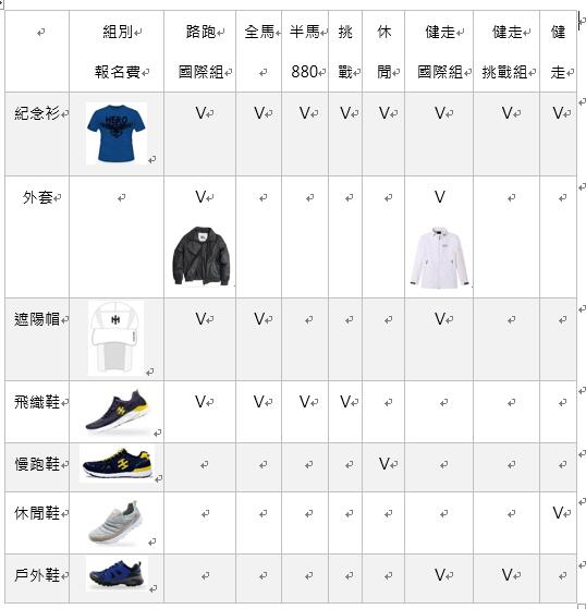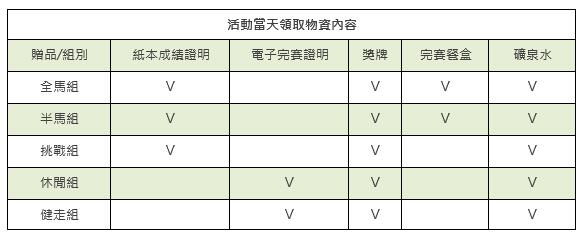 (1)完赛纪念衫(价值380元新台币,所有组别参赛均可以获得)