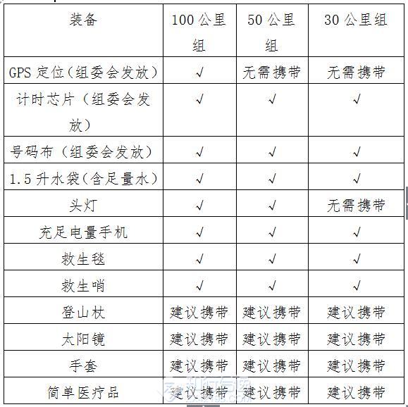 (三 )比赛采用手环计时,凡参加比赛的参赛者必须佩带计时手环(100公里组必须佩戴GPS定位),赛后回收。