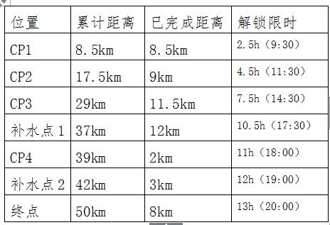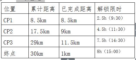 2.在各补给站和终点处均有志愿者手持打卡器为选手打卡,请积极配合。在封锁时间内完成比赛但缺少任何一个计时点的成绩,将不予排名。