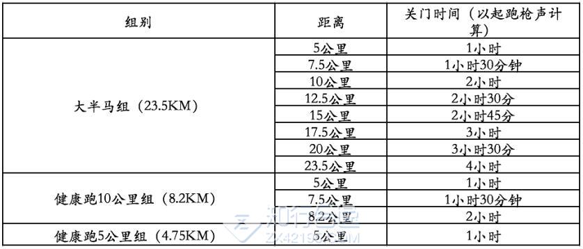 为了保证参赛运动员比赛安全、顺利,比赛期间比赛路线各段设关门时间,限时对交通封闭。起跑至关门时间到后,各路段恢复社会交通。参赛者在规定的关门时间内未跑完对应距离的参赛者须立即停止比赛,退出赛道,以免发生危险。退出比赛者可乘坐组委会提供的摆渡车到相应项目的终点。