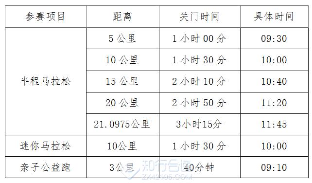 关门时间按自然时间计算,具体见下表(以发令枪声时间为准):