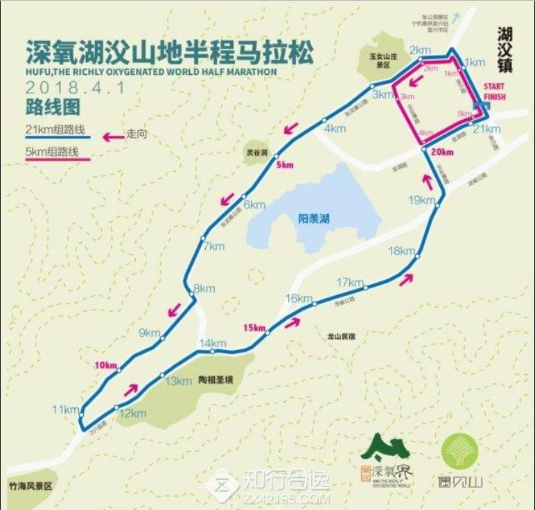 赛道路线:山地半程马拉松(21km)、迷你跑(5km)