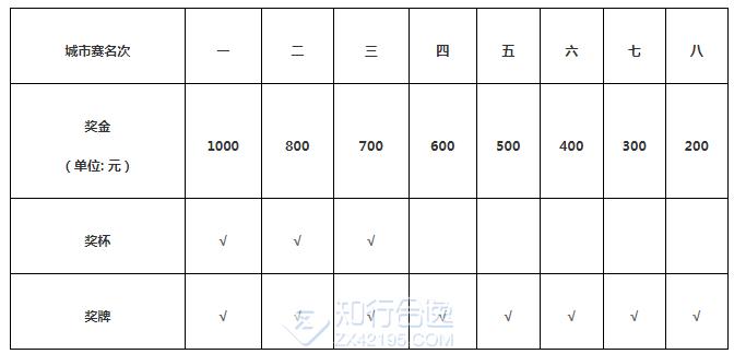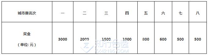 注:城市赛选手现场发放奖金及奖品;城市积分赛选手组委会现场不发放奖金,城市积分赛运动员的成绩在赛事官方网站公示比赛成绩10日后,如无疑议,获奖选手奖金打入预留银行卡。