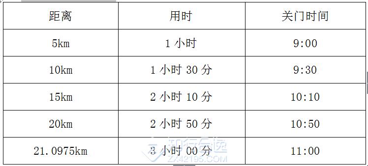 为了保证参赛选手比赛安全、顺利,比赛期间赛道路线各段设关门时间,限时对社会交通封闭。关门时间后,相应路段恢复社会交通。在规定关门时间内,未跑完对应距离的参赛选手需立即停止比赛,退出赛道,以免发生危险。退出比赛的选手可乘坐组委会提供的收容车到达相应项目的终点处。