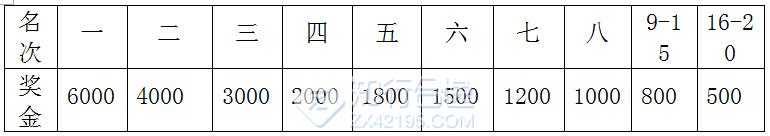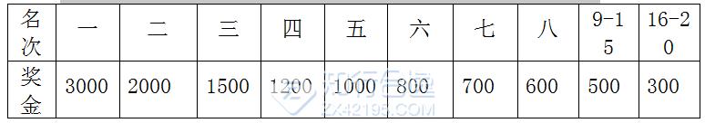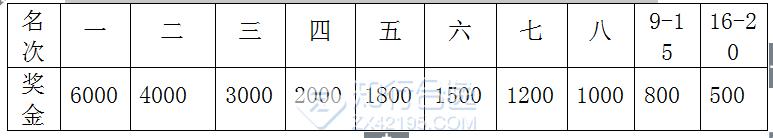 获奖选手分别获得如下表所列的奖金(单位:人民币)