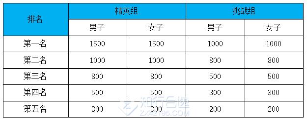 (一)精英组及挑战组个人组奖励前五名;徒步组不设名次。(单位:元)