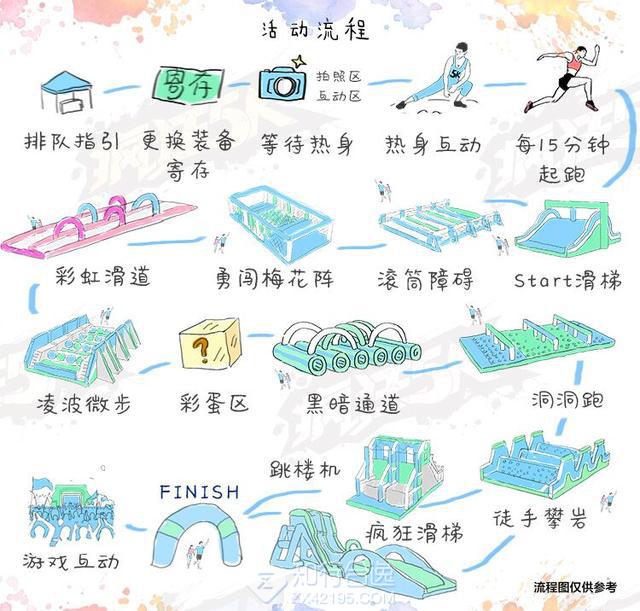 虽然只有五公里,是零基础的天堂。BUT巨型的创意障碍,需要你跑, 跳, 滑, 爬, 飞!才能过关!你敢来吗?激情弹跳,各种疯狂Jump,不用担心摔跤,我们给你最大的安全感,在这里体验飞身一跃的自由与释放!