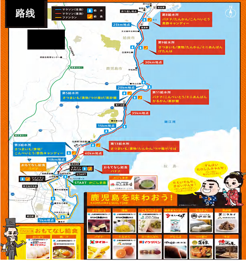 大部分赛道都沿着锦江湾,赛道上樱花漫布,更可以看到与锦江湾遥遥相望的日本最活跃的火山樱岛在冒烟!赛道非常平坦,有利于出成绩。